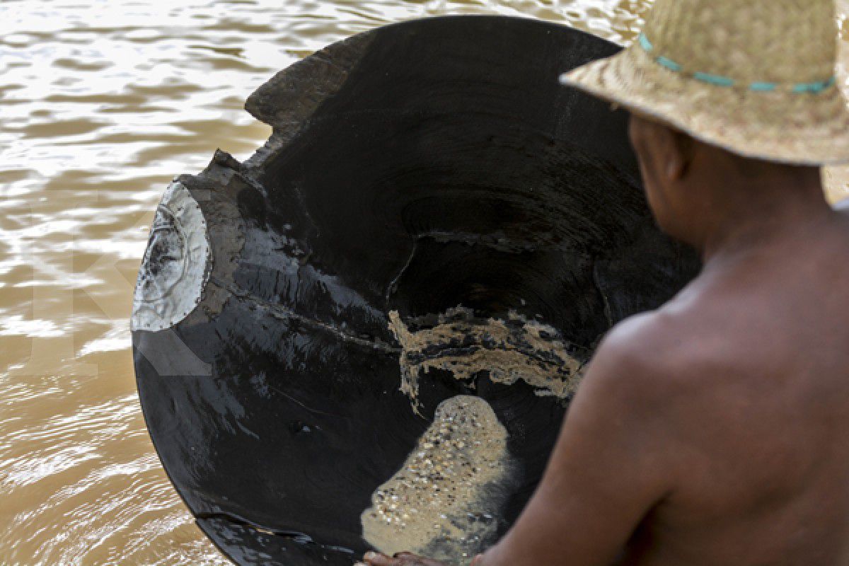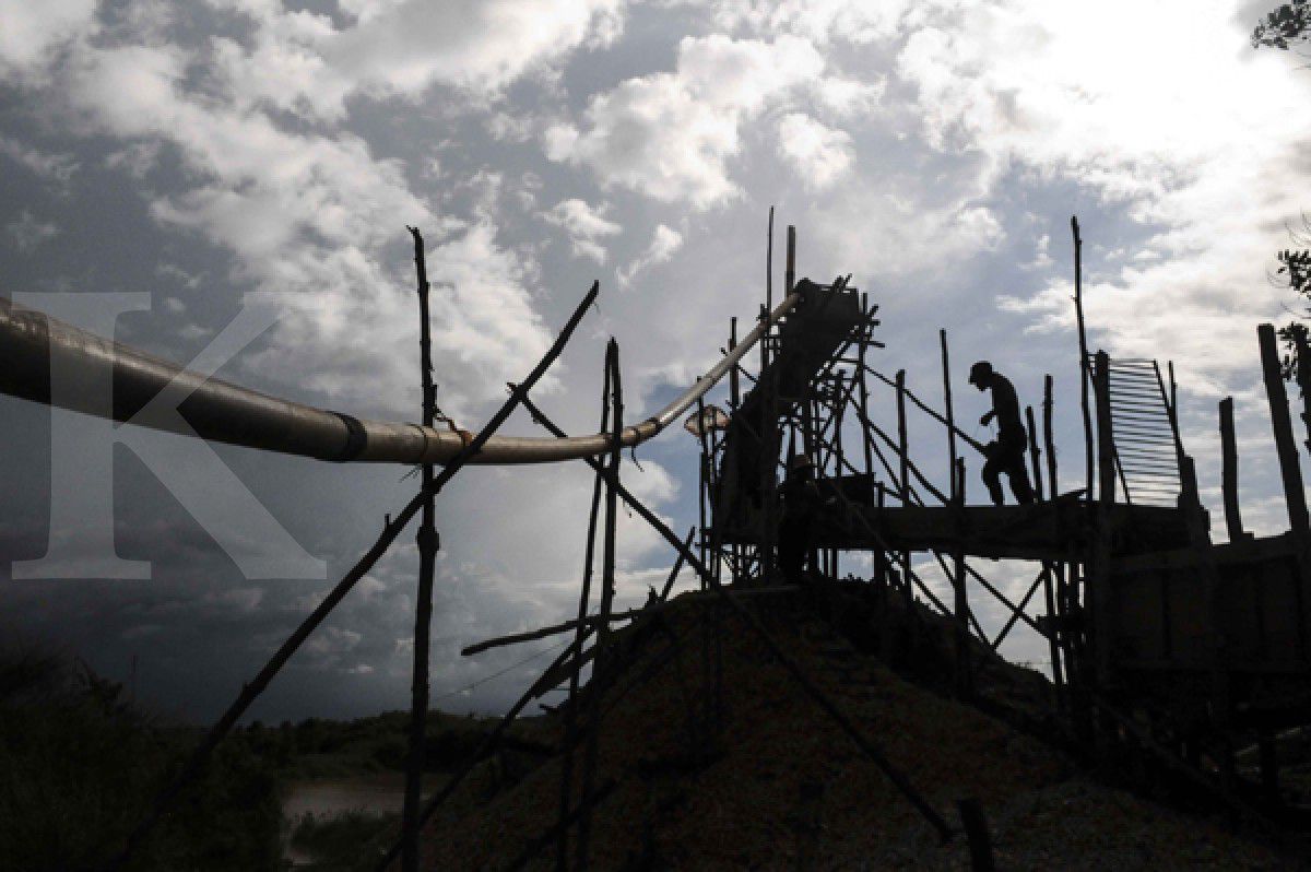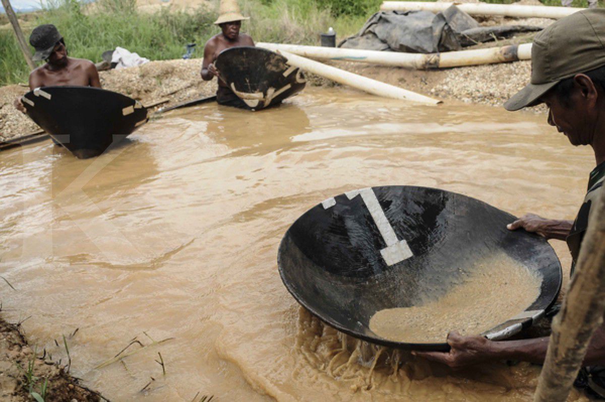 Sengatan matahari menghitamkan kulit. Namun, hal itu tak menyurutkan semangat para pekerja untuk mendulang intan. Mereka berharap butiran-butiran intan tersapu dalam tangan yang membuat lupa akan sebuah terik.