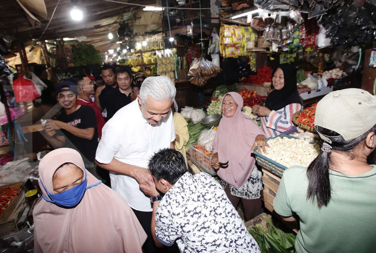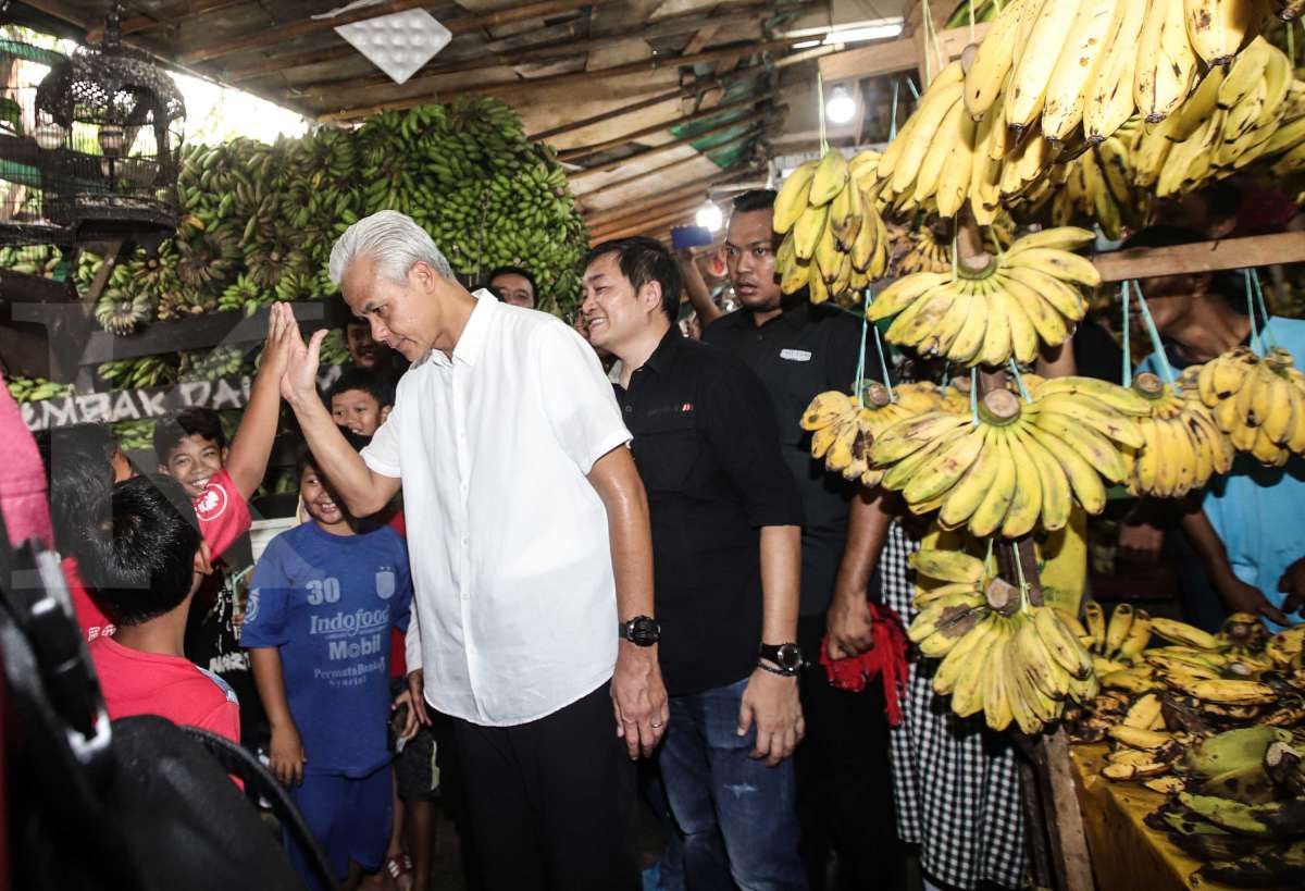 Bakal calon presiden Ganjar Pranowo blusukan di Pasar Anyar Bahari, Warakas, Tanjung Priok, Jakarta Utara, Sabtu (24/6/2023) pagi.