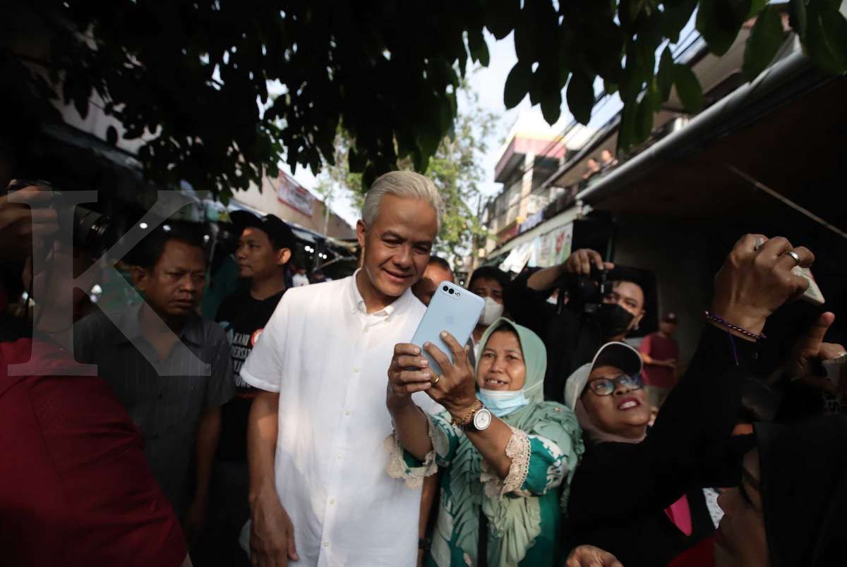 Bacapres dari PDI Perjuangan itu datang untuk menyerap aspirasi para pedagang sekaligus berdialog dengan sejumlah warga setempat. Kedatangan Ganjar diwarnai teriakan "Presiden" dari para warga pendukungnya.