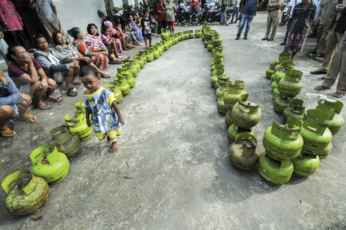 Kobaran api menyala dari kompor yang menggunakan tabung-tabung gas berwarna hijau di dapur salah satu rumah makan di Palembang, Sumatera Selatan. Siang itu, aktivitas dapur itu harus terhenti dengan hadirnya tim inspeksi mendadak (sidak) penyalahgunaan Liquefied Petroleum Gas (LPG) ukuran 3 kg.
