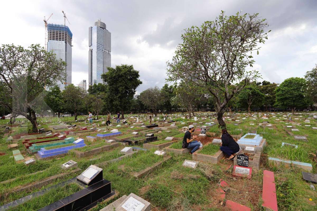 Kendati tak seramai tahun sebelumnya akibat anjuran untuk tetap berada di rumah dan larangan untuk berkerumun, mereka tetap antusias berziarah mengunjungi makam bersama keluarganya.