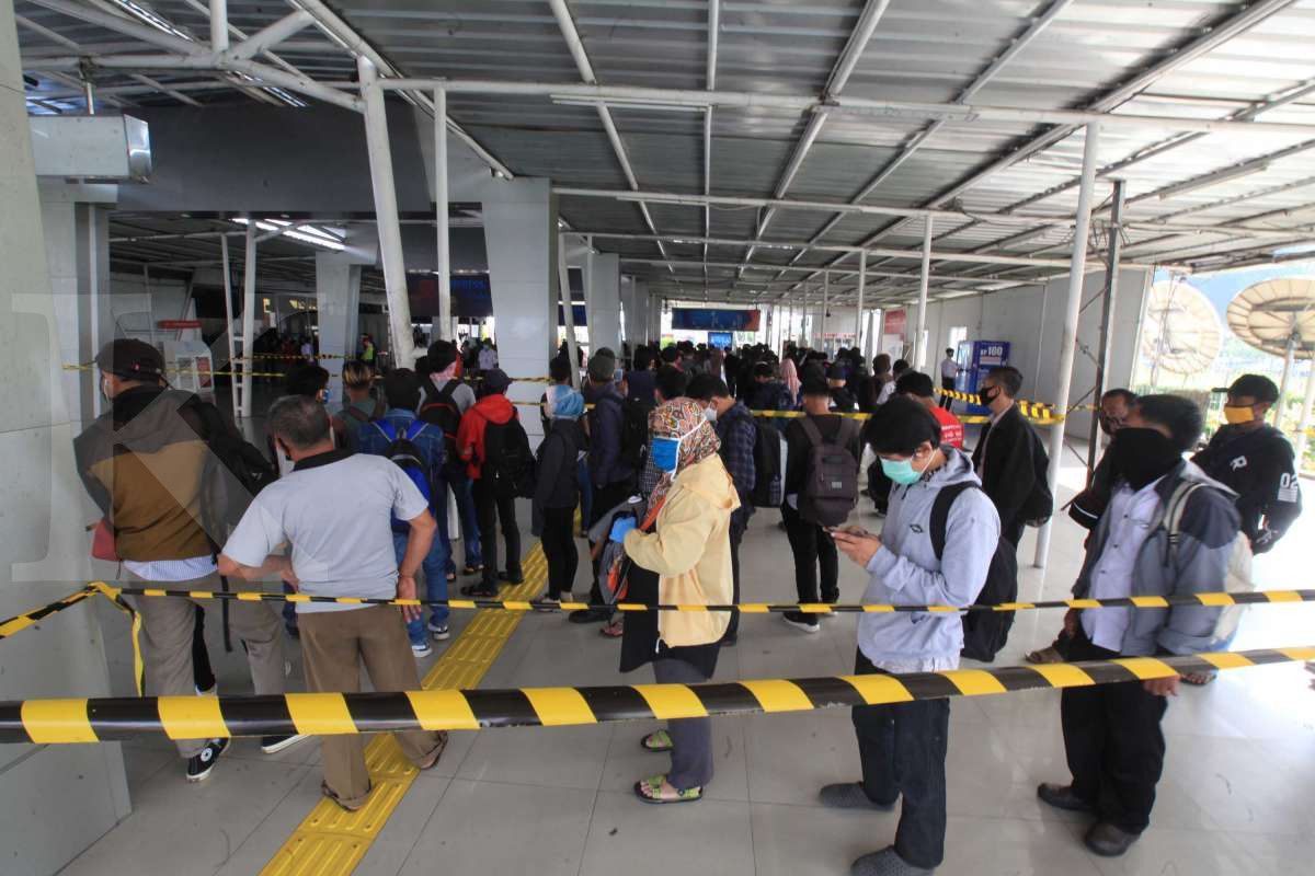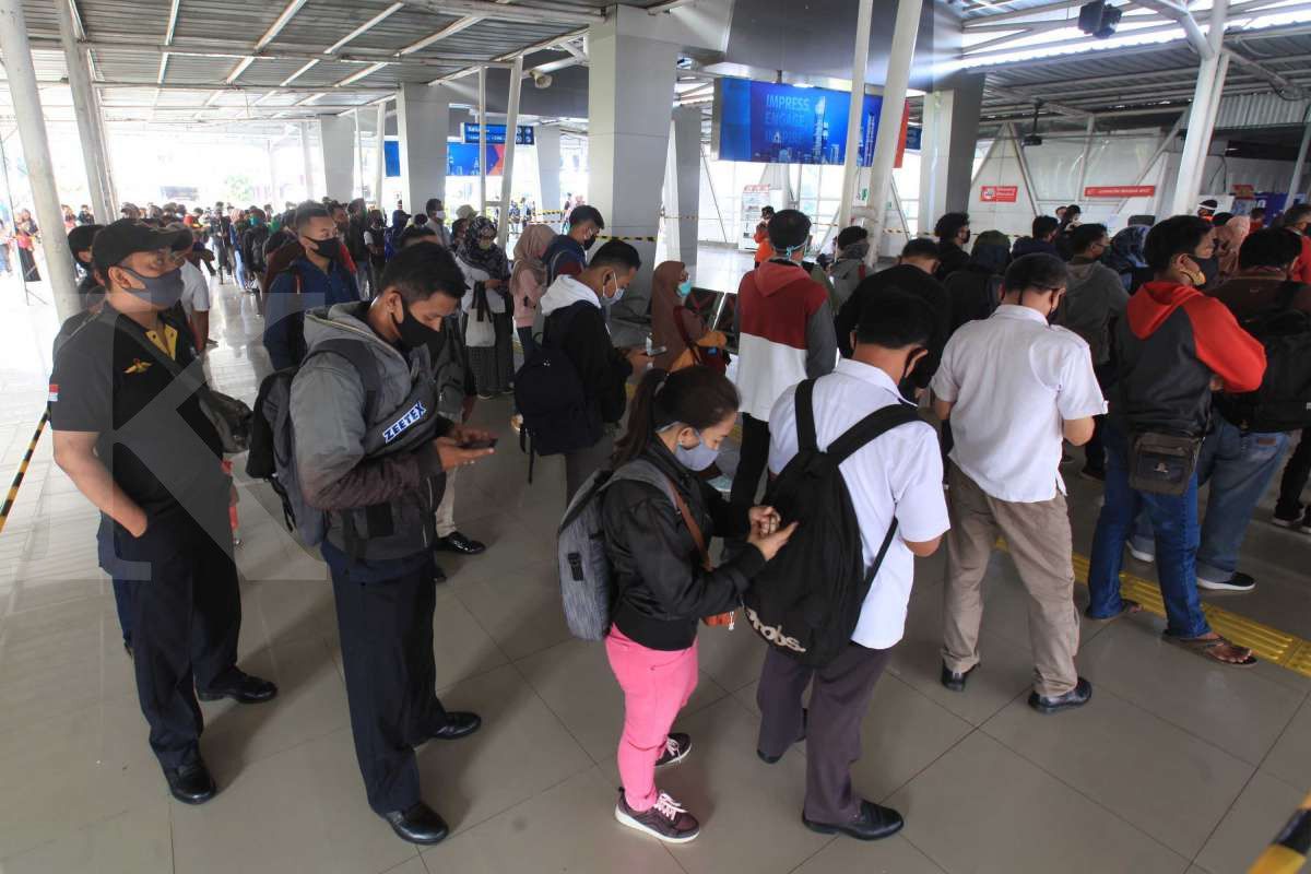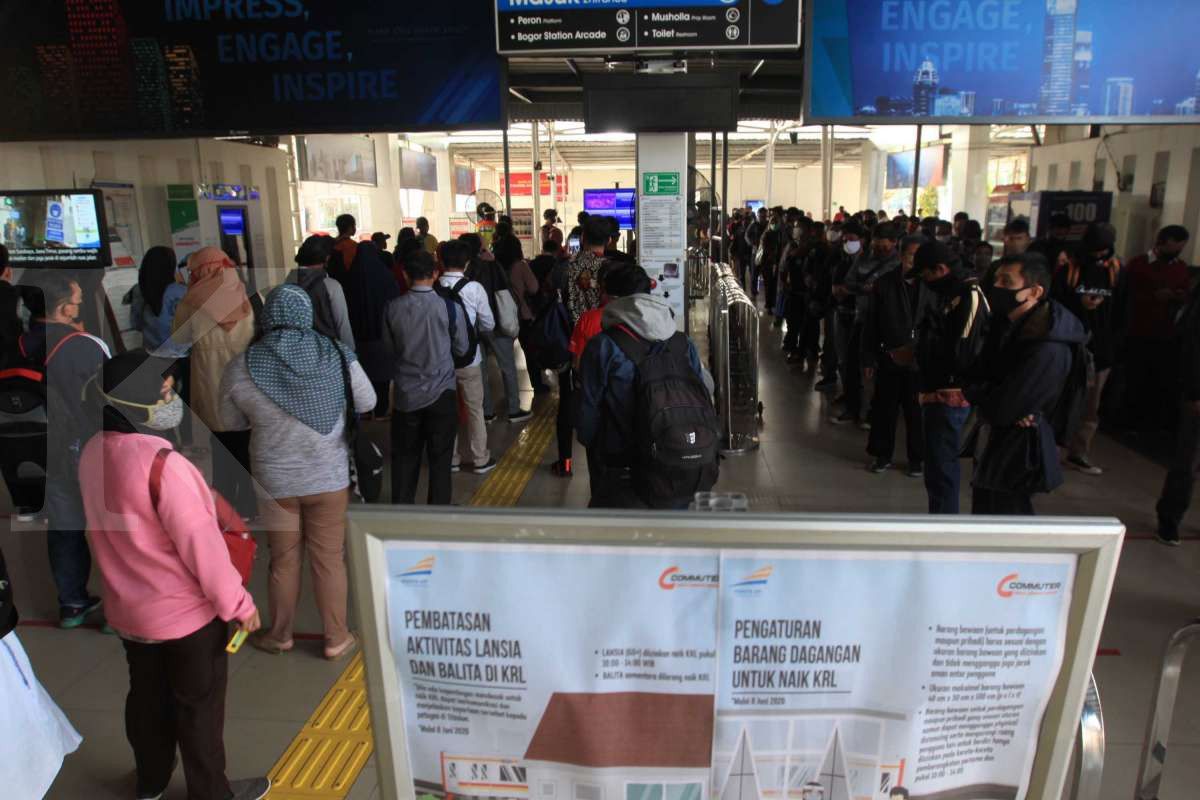Prediksi ini tak salah. Senin (8/6/2020) pagi, antrean ratusan penumpang terjadi di beberapa stasiun, mulai dari stasiun Bogor sampai Rangkas Bitung.