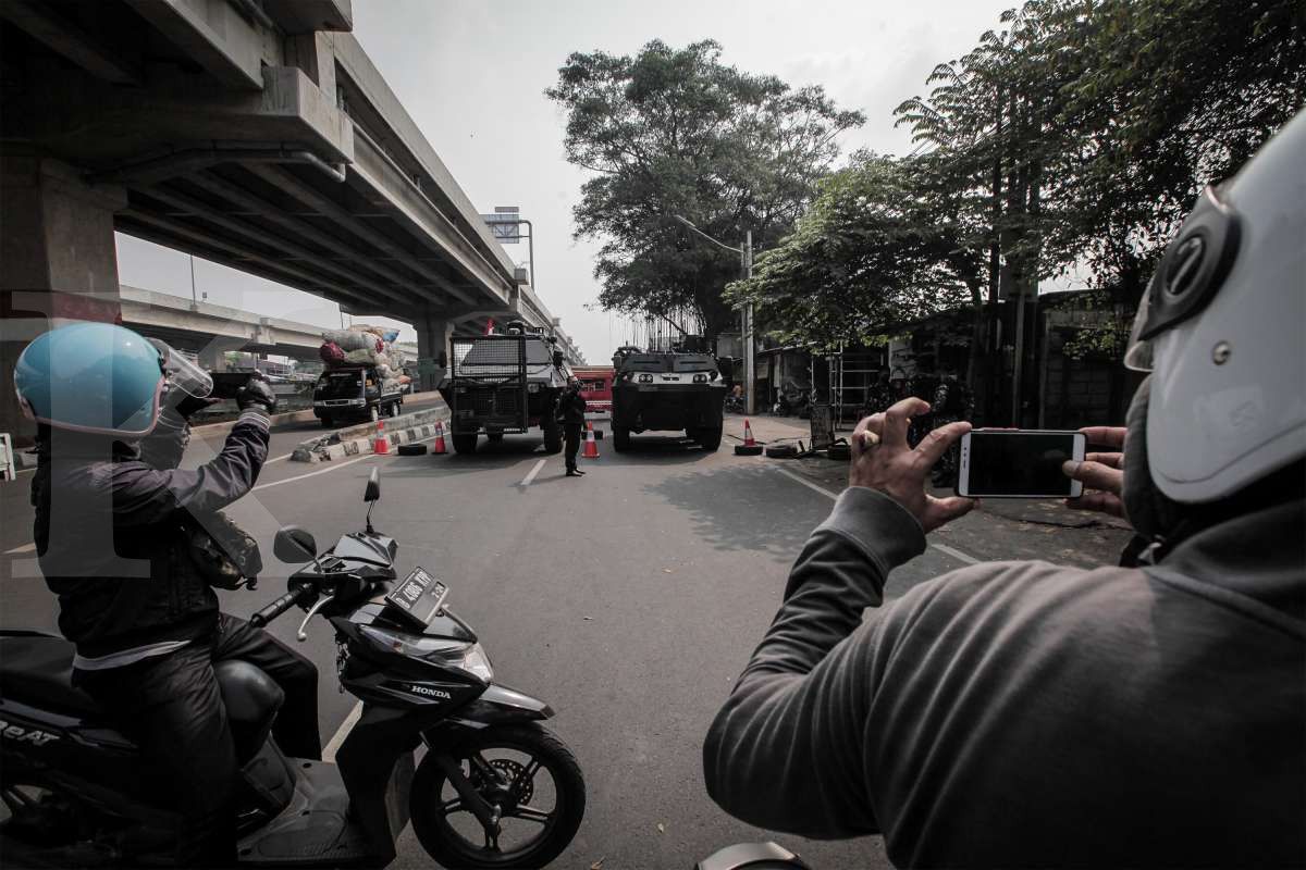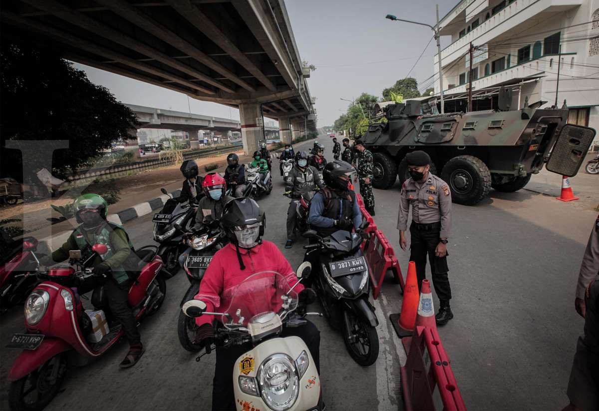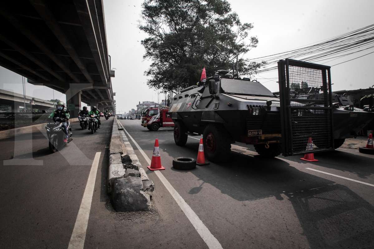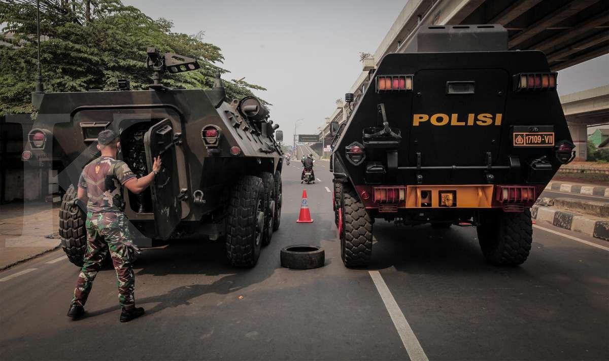 Kendaraan taktis TNI dan Polri diturunkan pada sejumlah titik penyekatan Pemberlakuan Pembatasan Kegiatan Masyarakat (PPKM) Darurat di batas kota Jakarta.